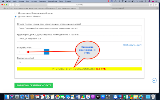 Далее - необходимо точно указать ОТКУДА забрать и КУДА отвозить пациента (необходимо указать название больницы, отделение, номер палаты). Необходимо указать вес пациента и этаж подъема на носилках (до 4 этажа наценка отсутствует)